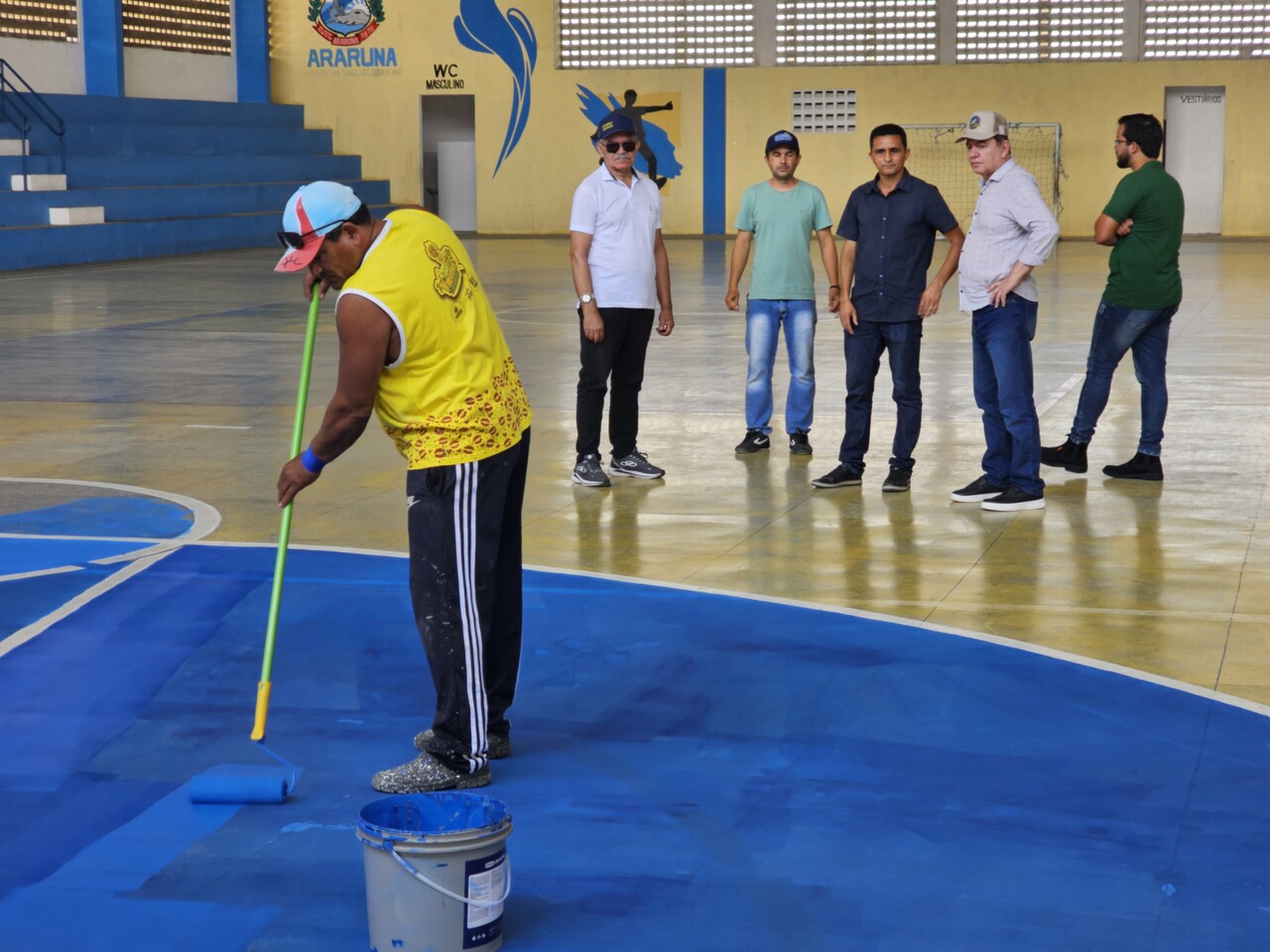 Prefeitura de Araruna inicia melhorias no Ginásio O Raulzão com redes de proteção e nova pintura da quadra