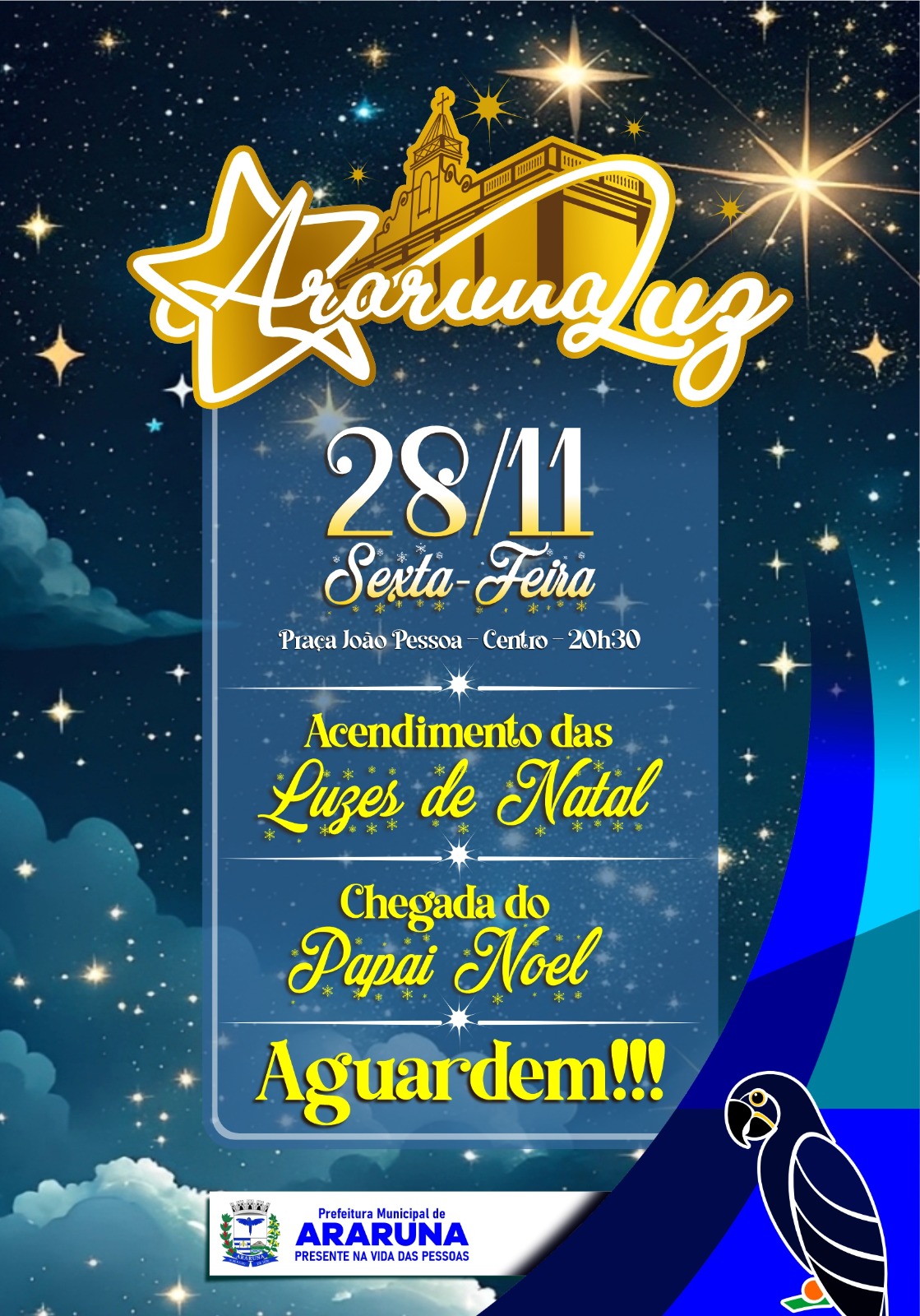Acendimento das luzes do Araruna Luz 2025 acontece nesta sexta; prefeito Availdo convoca população