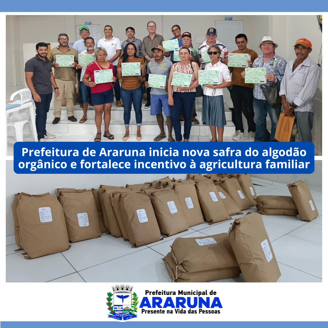 Prefeitura de Araruna inicia nova safra do algodão orgânico e fortalece incentivo à agricultura familiar