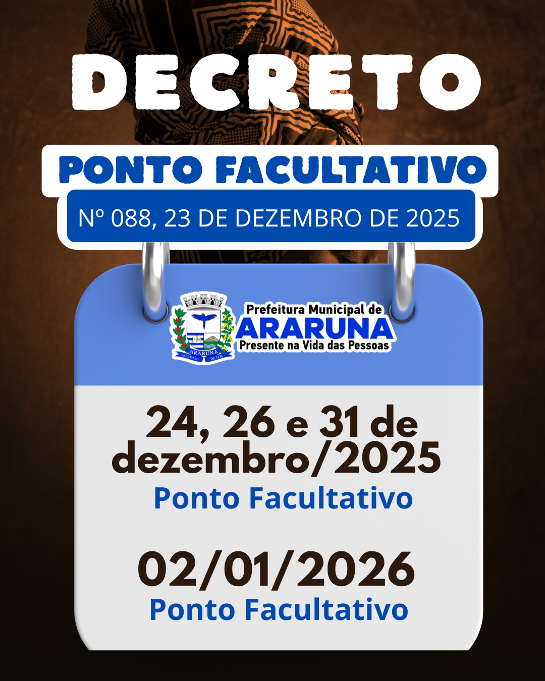 Servidores da Prefeitura de Araruna terão quatro pontos facultativos para as celebrações de fim de ano