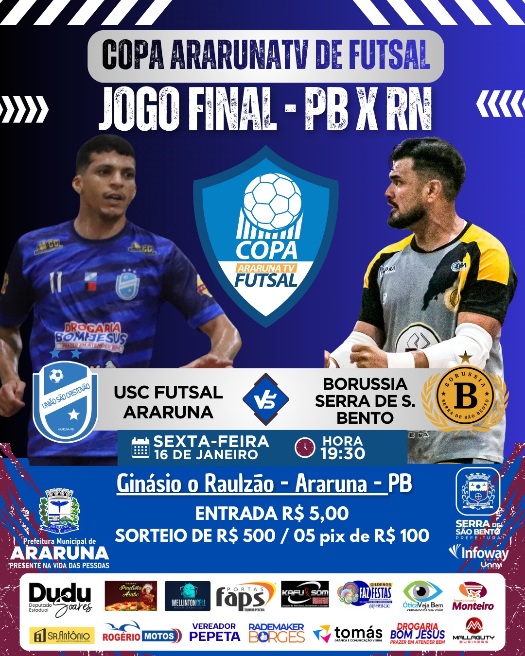 Grande Final da Copa ArarunaTV de Futsal 2025/2026 acontece nesta sexta-feira em Araruna