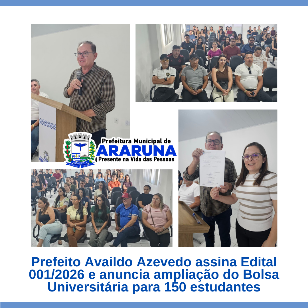Prefeito Availdo Azevedo assina Edital 001/2026 e anuncia ampliação do Bolsa Universitária para 150 estudantes