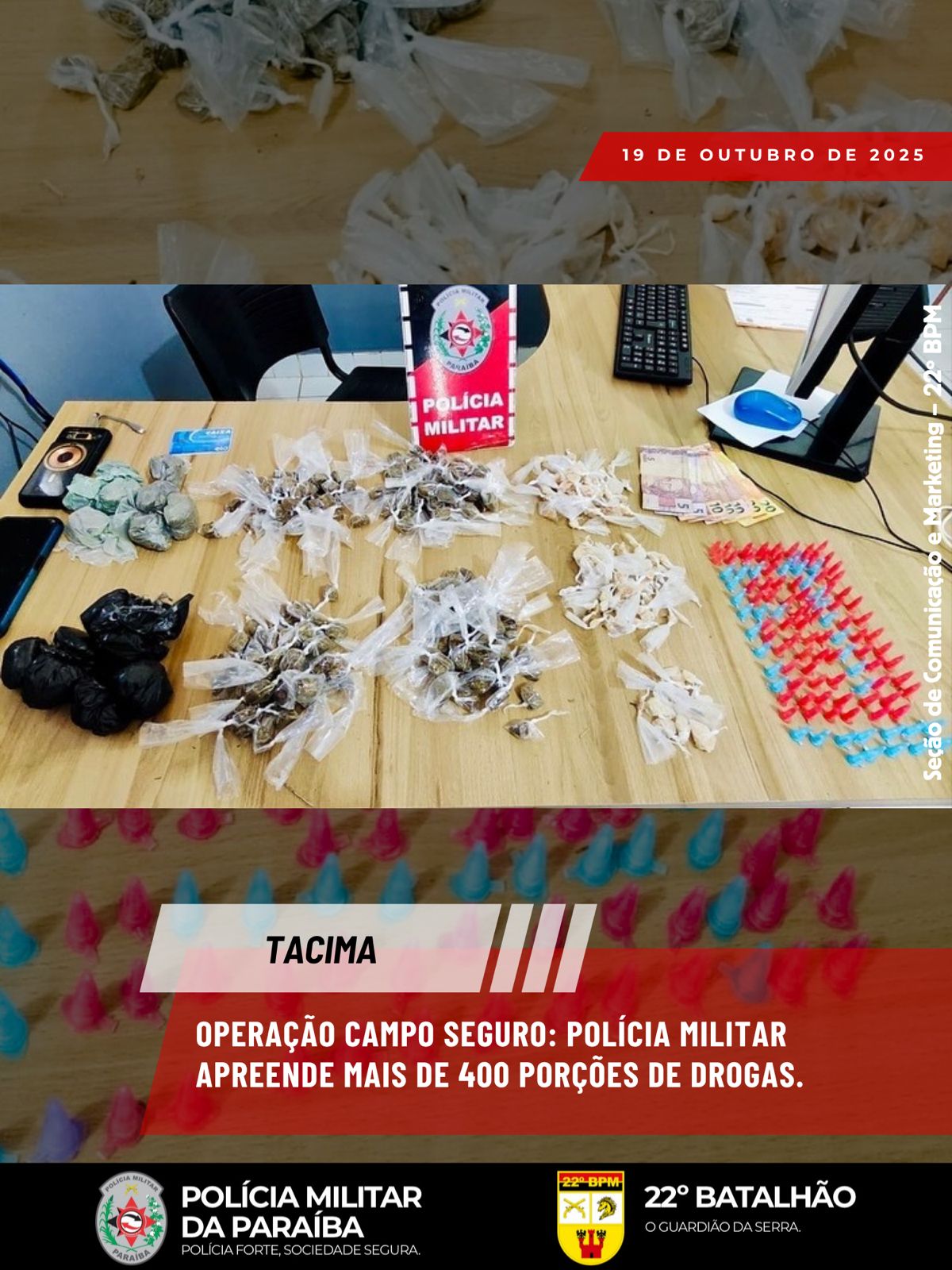 Operação da Polícia Militar apreende vasta quantidade de drogas em Tacima