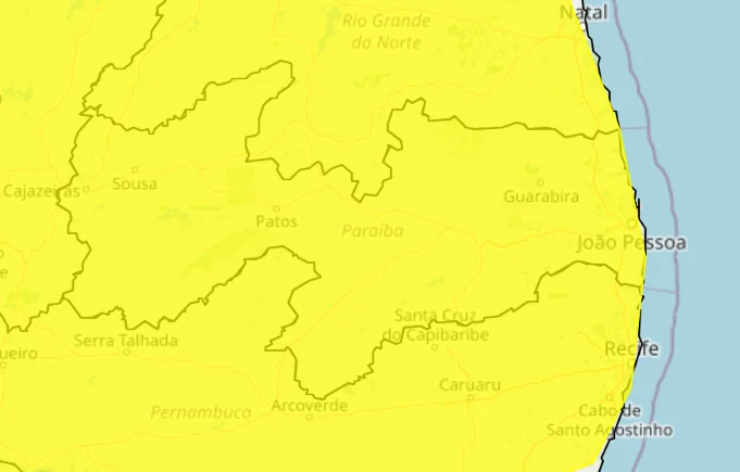 Inmet emite alerta de perigo potencial de chuvas para todos os municípios paraibanos
